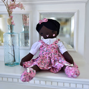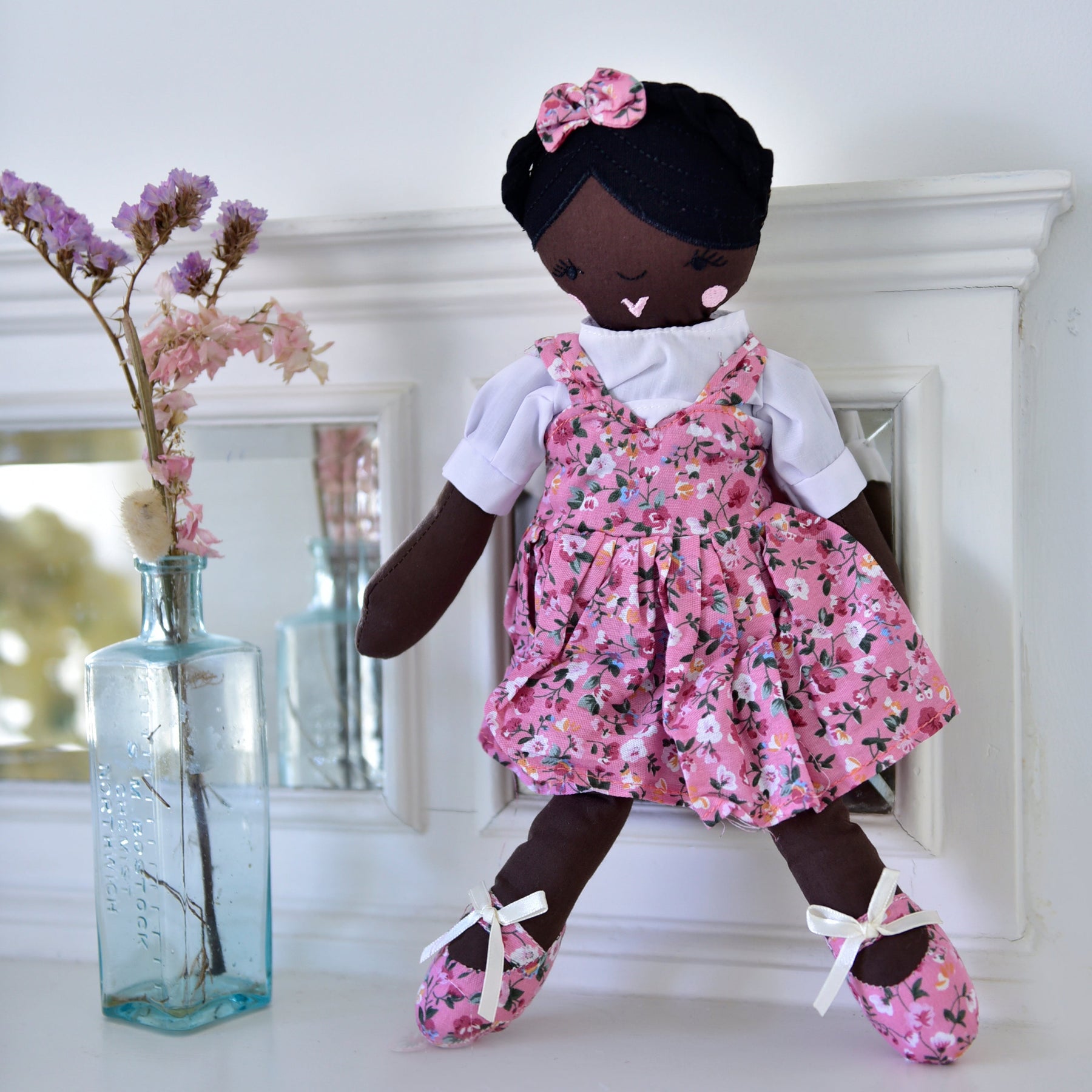 35cm Black Craft Doll Wearing A Pink Floral Dress