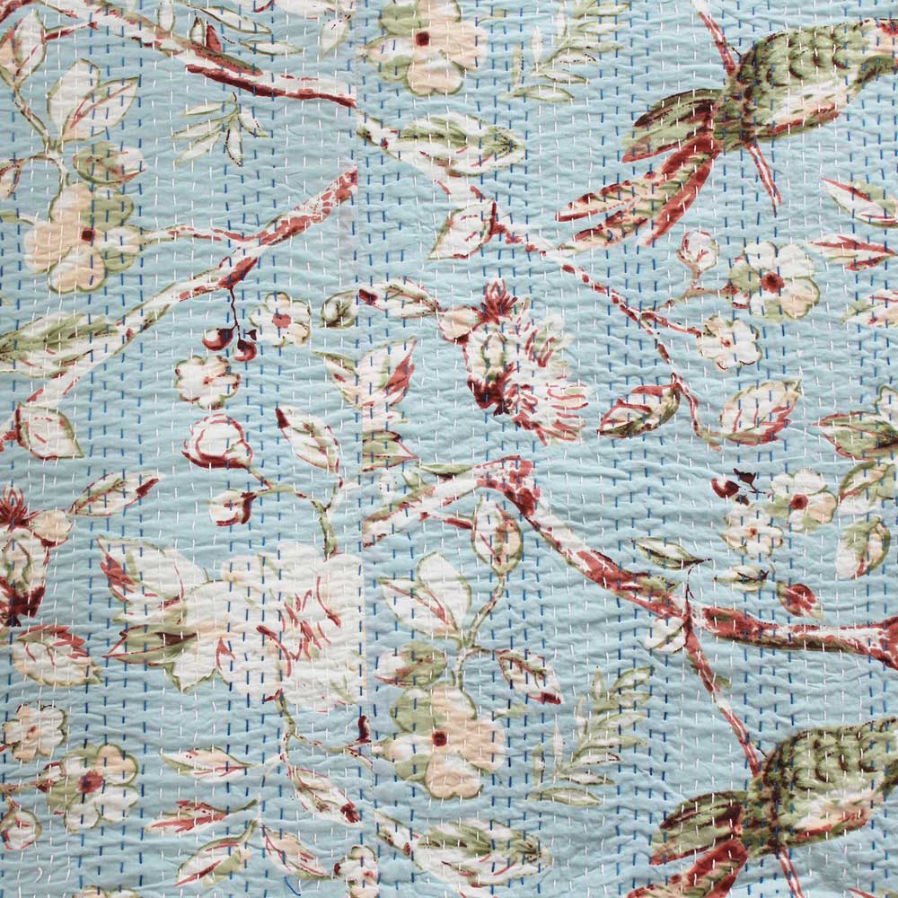 Pale Turquoise, Pink & Navy Floral Print Quilt/Throw ReversiblePale Turquoise, Pink & Navy Floral Print Quilt/Throw Reversible